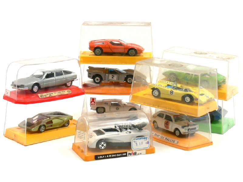 miniatures reproduisant les modèles : ALFA ROMEO, CHEVRON, CITROËN, FERRARI, FORD, LANCIA, LOLA, MASERATI & SEAT - un modèle en état 'B' - on y retrouve les marques : MATTEL, PILEN, MIRA & POLISTIL