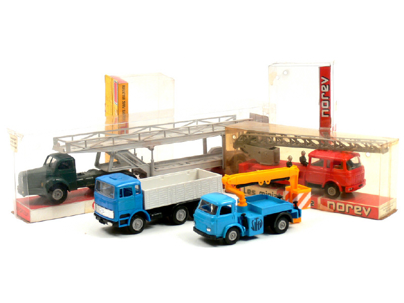NOREV (FRANCE) 131 SAVIEM SM 5C avec élévateur SIFEV bleu & jaune orangé