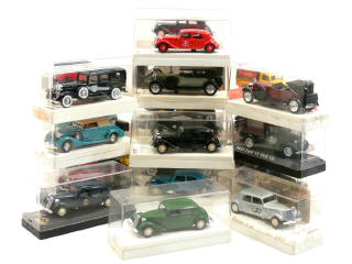 miniatures reproduisant les modèles : HISPANO-SUIZA, FORD, RENAULT, MERCEDES, ROLLS ROYCE, CITROËN, CORD, DODGE, TALBOT, CADILLAC & PACKARD