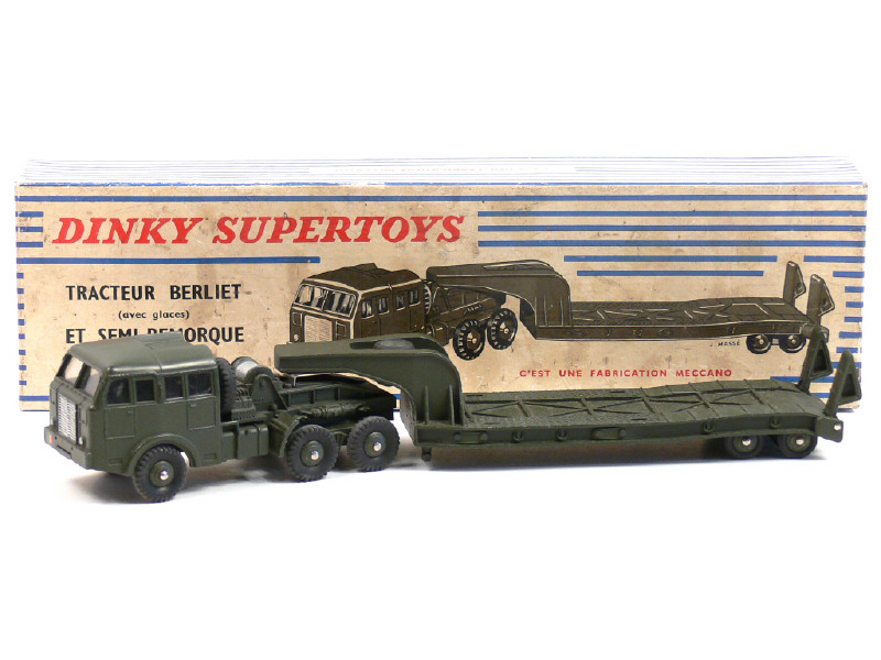 DINKY TOYS (FRANCE) 890 BERLIET Transport de char (version avec jantes convexes) kaki
