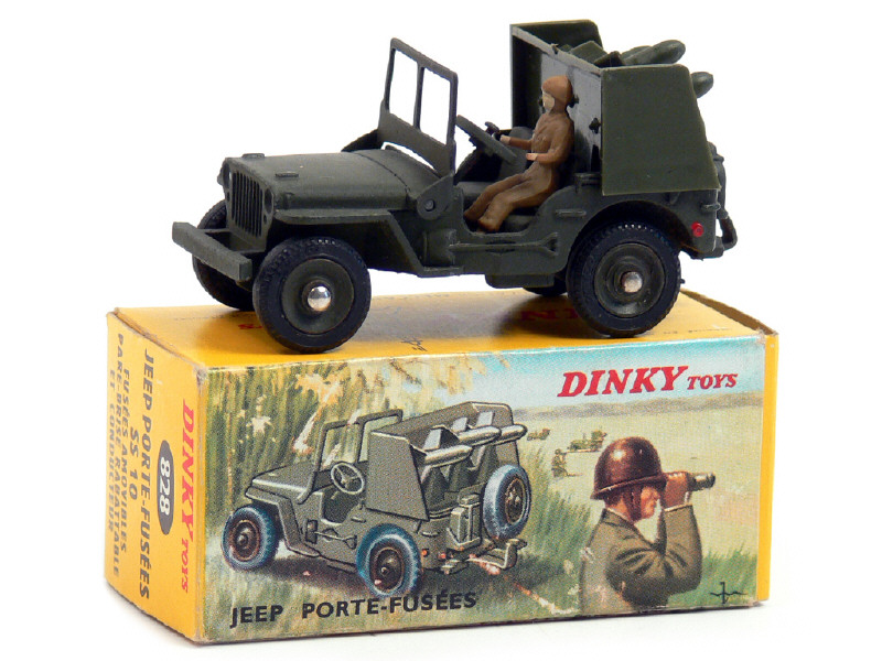 DINKY TOYS (FRANCE) 828 JEEP WILLYS Porte-fusées SS 10 kaki