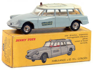DINKY TOYS (FRANCE) 556 CITROËN ID 19 Break 'AMBULANCE MUNICIPALE' (version avec décalques décalés) gris, toit crème