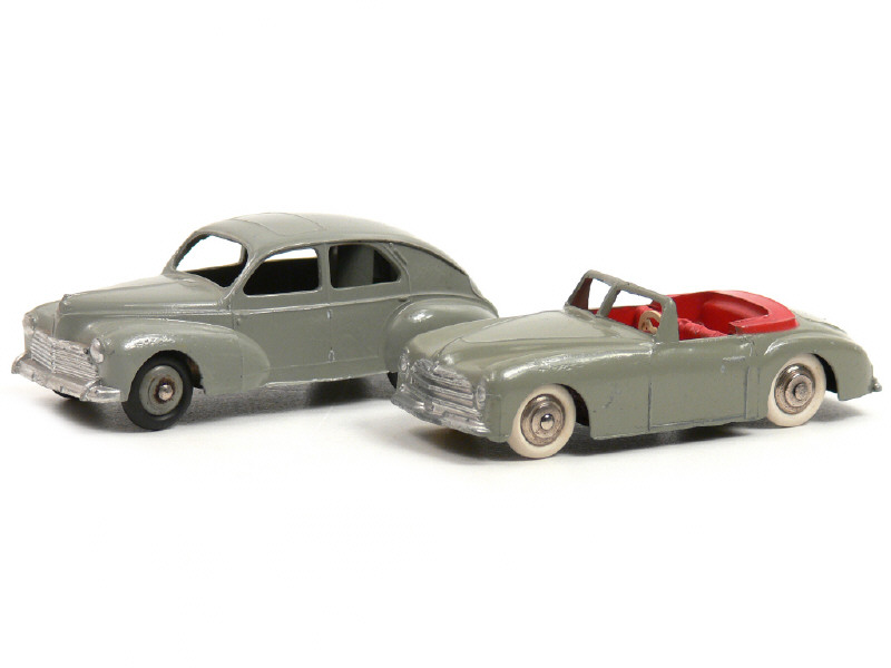 DINKY TOYS (FRANCE) 24R PEUGEOT 203 Petite lunette arrière (version avec intérieur de toit quadrillé & ailes lisses) gris moyen, jantes identiques