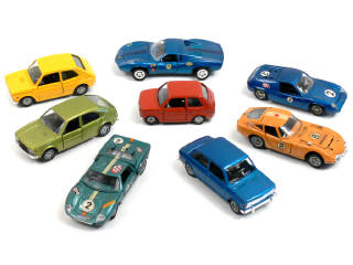 miniatures reproduisant les modèles : ALFA ROMEO, CHEVROLET, FIAT, FORD, LOTUS & TOYOTA - quelques petits détails de peinture & décalques ajoutés
