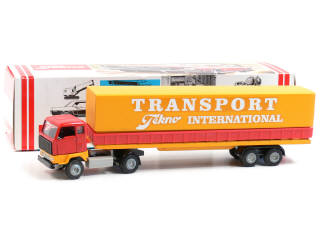 TEKNO (DANEMARK) 426 VOLVO FB88 Semi-remorque bâché 'TRANSPORT TEKNO INTERNATIONAL' jaune d'or, rouge & noir