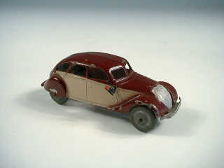 DINKY TOYS (FRANCE) 24L PEUGEOT 402 'TAXI' (version sans plancher & avec roues zamac) marron & crème