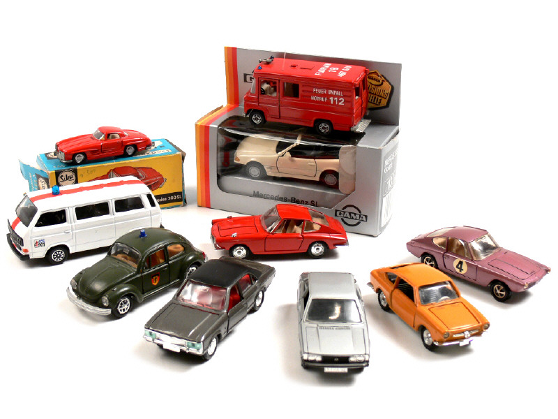 miniatures reproduisant les modèles : BMW, FIAT, FORD, MERCEDES & VOLKSWAGEN - on y retrouve les marques : GAMA, SCHABAK, SIKU, MÄRKLIN & SCHUCO - 2 véhicules en boîte (dont une en état 'd') - un modèle en état 'D'