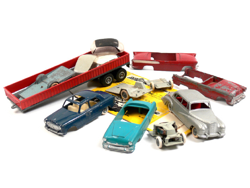 états de 'D' à 'F' - comprend : 5 carrosseries, 6 parties de châssis (dont 2 motorisés), 2 remorques, 2 aménagements intérieurs & 3 vitrages - on y joint une boîte vide référence 202 en état 'c'