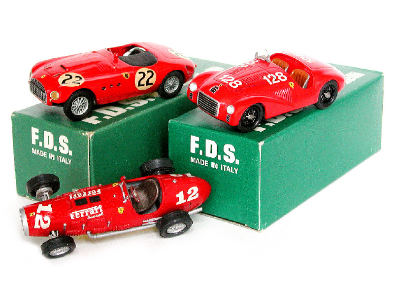 miniatures reproduisant les modèles : 125 sport de 1947, 4,5l VIGNALE Nurburgring de 1953 & 375 INDY de 1952 - une boîte état 'b' - un véhicule sans boîte