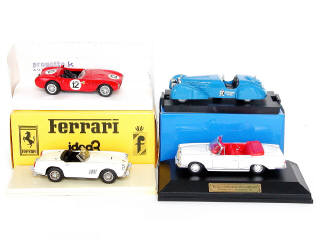 état de 'A.a' à 'A.c' - miniatures reproduisant les modèles : BUGATTI 57S, MERCEDES 220SE, FERRARI 250GT & FERRARI 225S Le Mans 1962 - on y retrouve les marques : BRUMM, FALLER, IDEA 3 & PROGETTO K