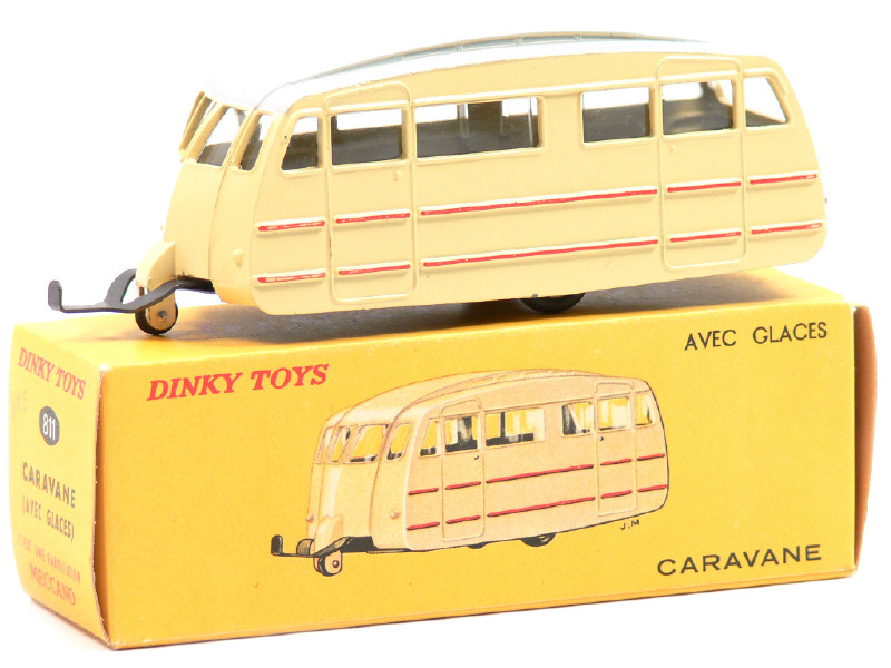 DINKY TOYS (FRANCE) 811 Caravane (version avec toit lisse) crème, filets rouges, toit blanc